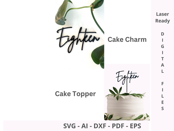 Digital files - Eighteen Cake Topper and Eighteen Cake Charm Bundle SVG