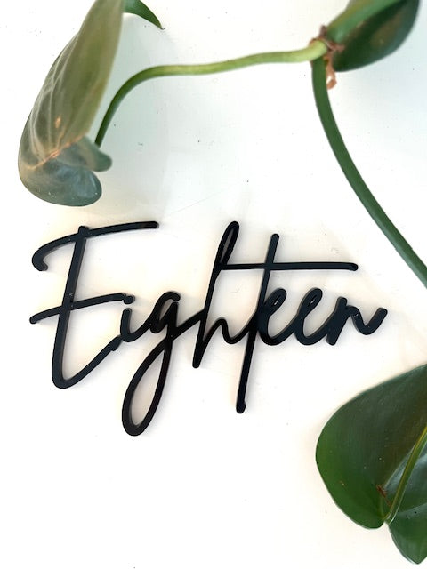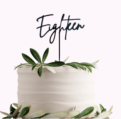 Eighteen Cake Topper - 13cm wide x 17cm high (5.11" wide x 6.69" high)
